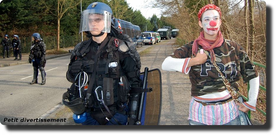 Je suis du mauvais côté , je l'ai voulu pour établir mon propre avis sur ce que les télés filment ou la presse diffuse , avec l'intention de dramatiser encore plus, pour donner encore plus de peur aux gens .Je me rappelle ce que m'avait dit le gendarme avec qui j'ai discuté hier , ils ont éloignés la contre manifestation le plus loin possible , pour que ces marionnettes de la capitalisation en saches le moins possible . Le drame , selon moi , ce sont les forces de l'ordre qui l'ont provoquées . Pourquoi cette réflexion , simplement qu'elles se sont postées à quelques métres du village NATO . En plus en pleine zone urbaine ,pas trés malin cela , puisque ils parquent les occupants du village , comme du vulgaire bétail en les empêchant de sortir et de s'exprimer . Premier constat personnel . Logique aussi que la contre manifestation réagisse, vu qu'elle est muselée . pas mal la liberté d'expression .............. Et devant la provocation des forces de l'ordre , rien qu'a voir ces forces la dans leur accoutrement .
